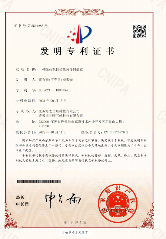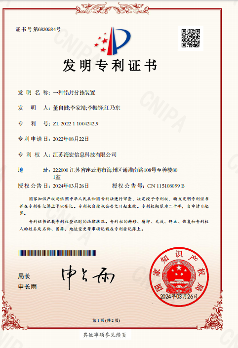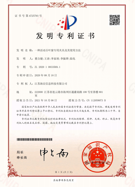 發(fā)明專利證書